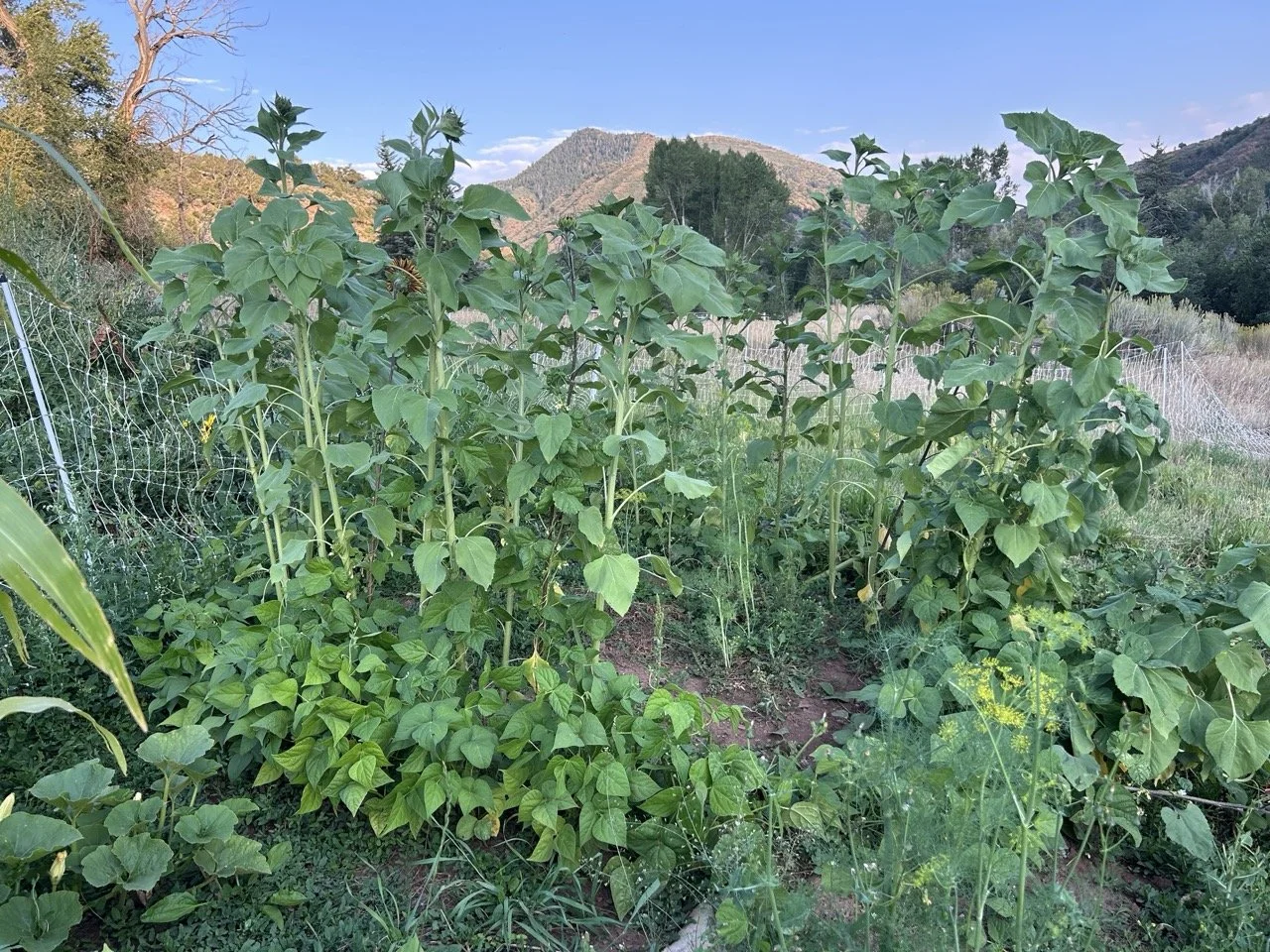 Remember the sunflower circle I planted for my inner child? It’s doing great! It’s amazingly cool inside the circle, and sitting on the dirt surrounded by stalks and beans feels about as magical as I remember imagining it.