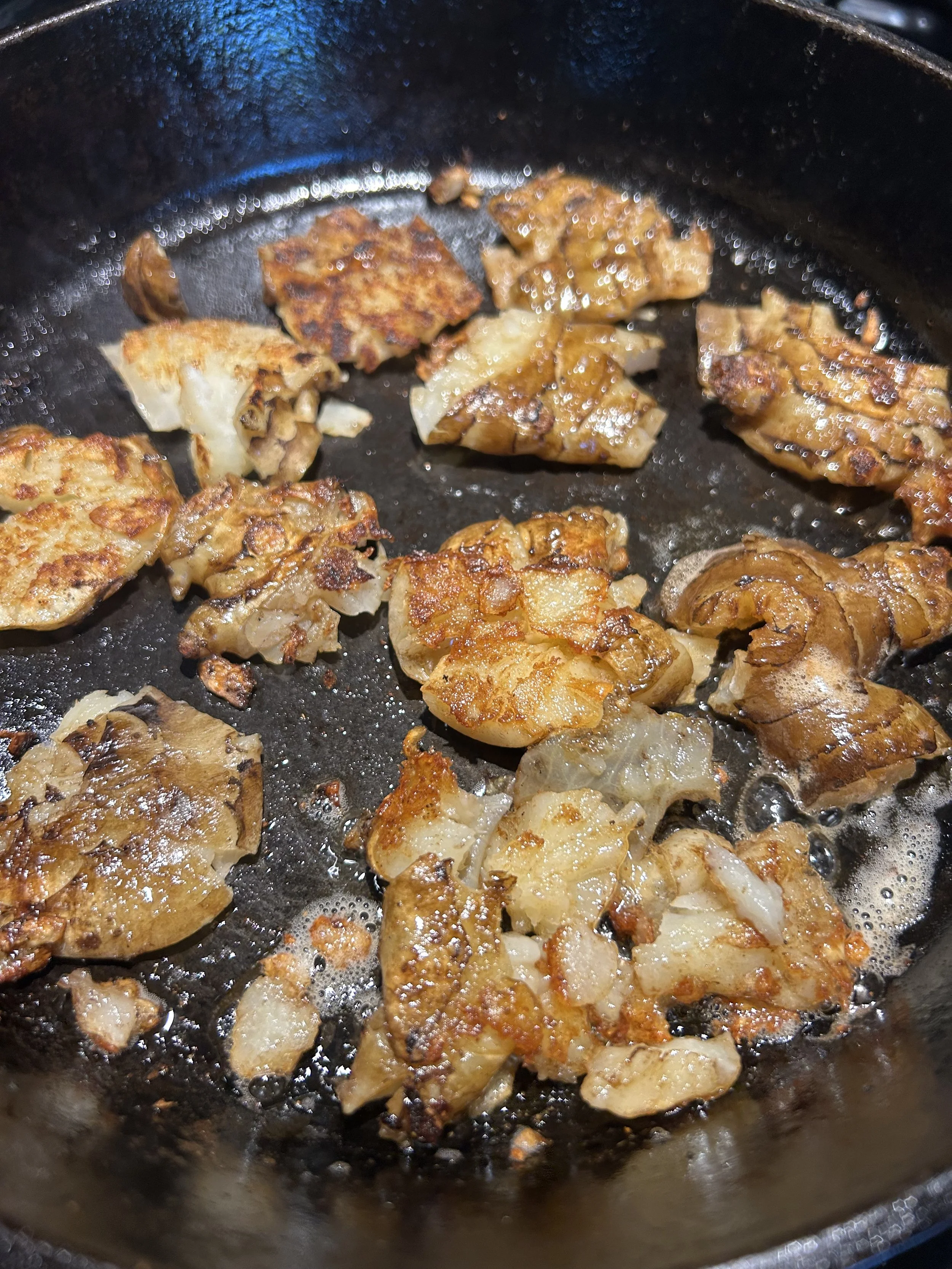 Pan-Fry: Heat a generous slick of oil or butter in a cast iron or heavy skillet over medium heat. Add smashed sunchokes in a single layer—don’t crowd the pan. Cook until golden and crisp on both sides, about 3–5 minutes per side.